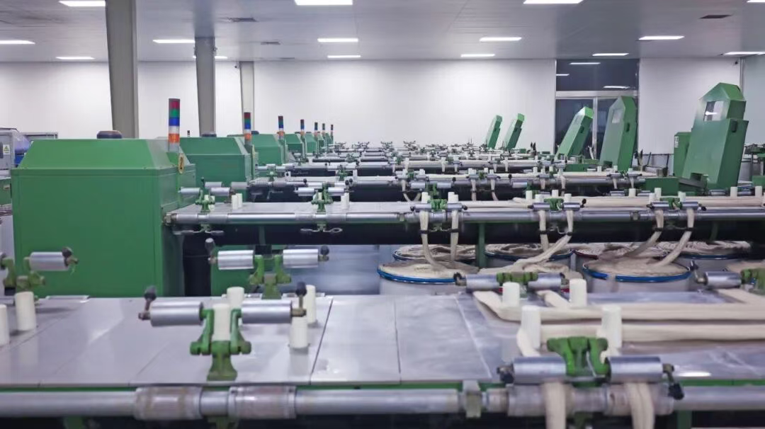 11月6日,清河县河北宇腾羊绒制品有限公司的智能化无人车间内,企业自主研发的集成化山羊绒高效精分梳生产线高效运转。作为省级制造业单项冠军企业,宇腾羊绒开发了无毛绒、山羊绒条、山羊绒纱线等主导产品,其中,无毛绒全球市场占有率高达15.78%。河北宇腾羊绒制品有限公司绒条车间。企业供图