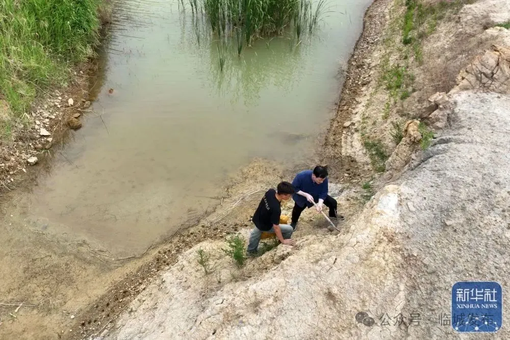 ↑ 6月28日,张志忠(右)带着学生在寻找烧制瓷器的原料(无人机照片)。