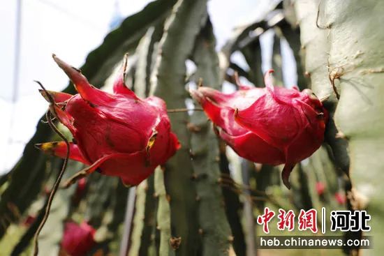 图为固安县兴芦农业科技园区鸿集家庭农场温室大棚内长势喜人的红心火龙果。吴迪 摄