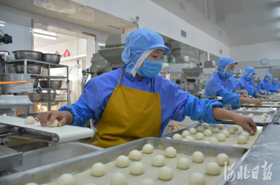 双合盛生态农产品有限公司保留传统工艺,进行粘豆包生产。河北日报记者孙也达摄