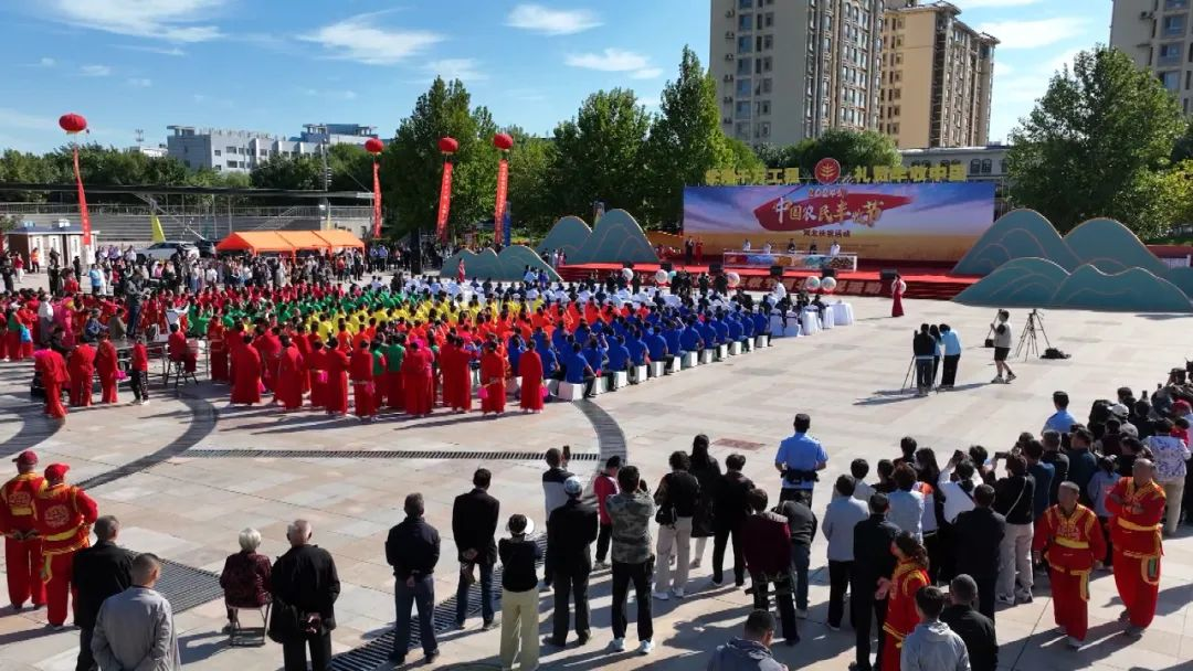 秋分时节,瓜果飘香粮满仓,现在我们就来到了2024年中国农民丰收节的河北主会场——衡水武邑县。此次活动也是分为了六大功能展区,有服务三农展示区、乡村振兴五色创意展区,还有丰收市集农产品产销区。那现场的农民们不仅带来了极具乡村特色的歌曲舞蹈、民俗表演,也带上了他们的特色农产品,跟大家一起分享丰收的喜悦。