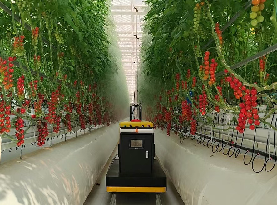 正在推着轨道采摘车来回穿梭在“爱索301”红色串收樱桃番茄种植大棚里的张荣,过去也是一个种过地、种过果蔬的传统农民,面对棚内的所有智能化设施,她说:“过去从来没见过这些智能设施,现在的科技让我大开眼界,不仅种植快,产量还挺高,一年四季都能收获。”从做“体力活”到干“智力活”,今年春节假期也是张荣第一次在“家门口”值班,与以往不同的是,今年还多了一些机器人“工友”陪她一起值守。