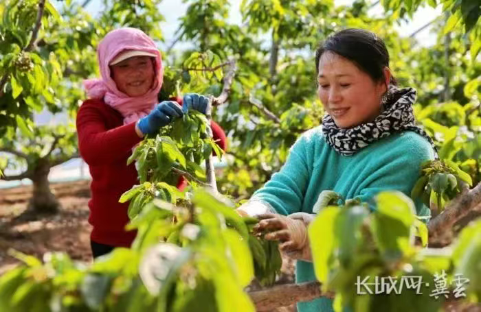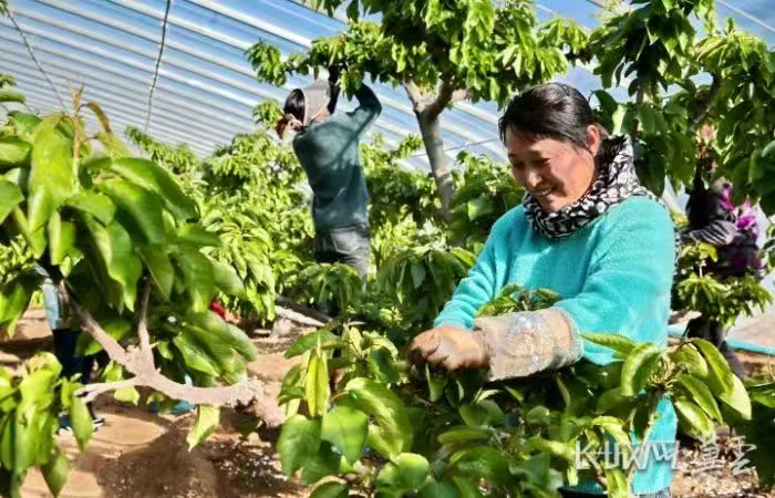 2月6日,秦皇岛市海港区海阳镇的秦皇岛市祺和种植农民专业合作社内,果农们正在管护着大樱桃树。近日,海阳镇多个合作社的果农抢抓农时,精心管护果树,大棚内一派人勤春早的繁忙景象,处处洋溢着生机与希望。