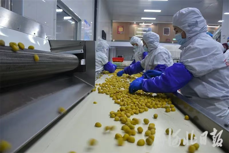 4月2日,在青龙满族自治县百峰贸易有限公司板栗深加工车间,工人在挑选板栗仁。河北日报、河北日报客户端记者张辉摄