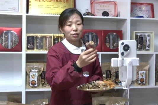 “给大家打开看一下,这是我们的主打产品,自家种植的姬松茸,还有相关检测报告,可以放心购买……”来到曲周县槐桥镇二刚食用菌种植专业合作社,销售经理张翠云正在抖音平台上直播卖货。