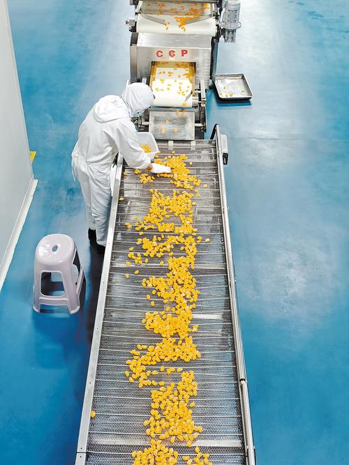 7月22日,位于邱县的河北康贝尔食品有限公司生产车间内,一名工人正在筛选产品。 本版图片均由本报记者魏雨摄