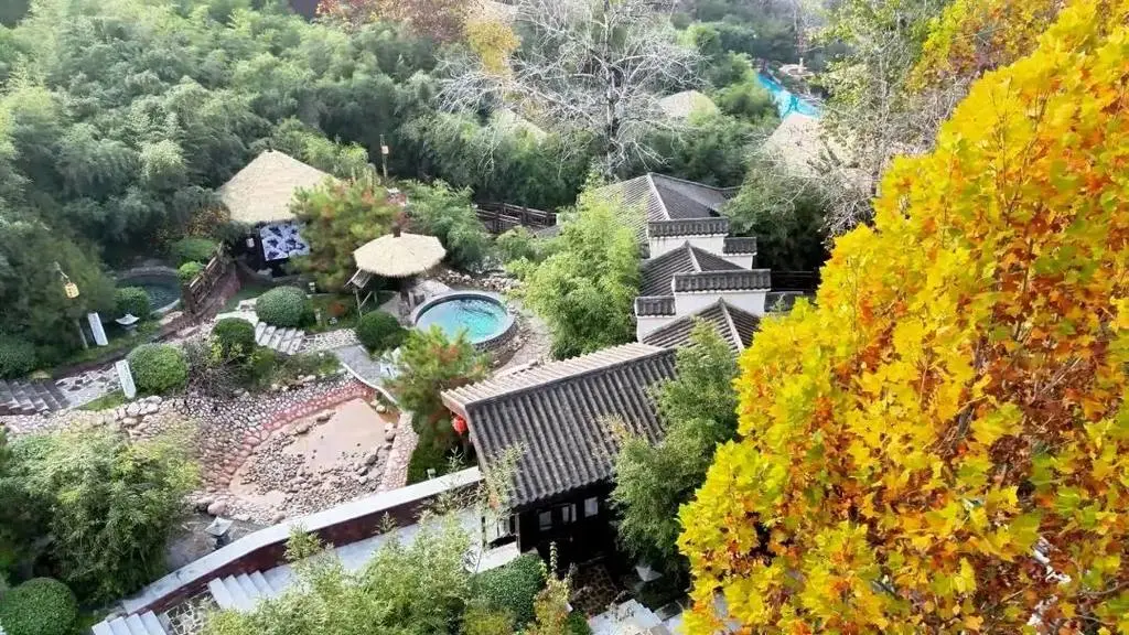 西部长青温泉谷依山而建