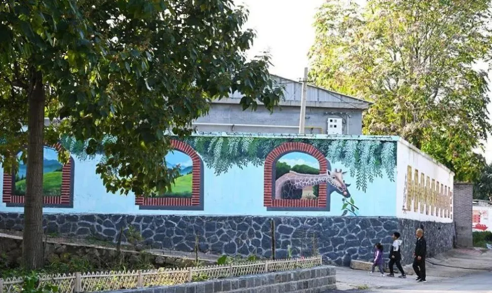 河北省级和美乡村示范村临城县南盘石的彩绘墙。河北日报客户端