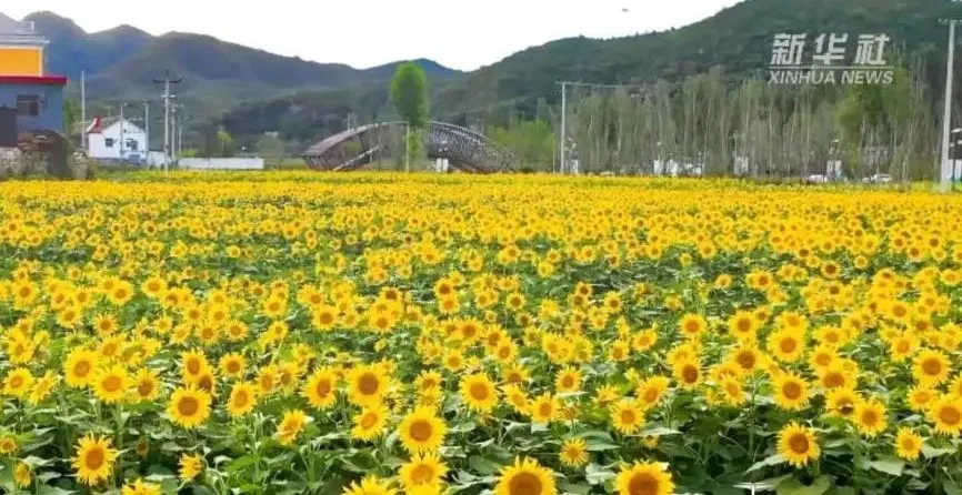 在保定市易县田岗村,田野间花开烂漫。新华社