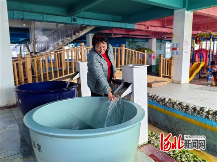 已是深冬,在秦皇岛北部大山中的青龙满族自治县肖营子镇温泉村的池塘里,清澈的水面上几朵嫩黄色的荷花正在盛开。寒冬盛开的荷花正是温泉村的特色景致。温泉村,如其名,村内地热资源丰富,温泉众多。近年来,温泉村依托温泉资源发展旅游产业,逐渐闯出了知名度。2024年12月13日,记者来到温泉村,村庄道路整洁,两侧路灯上的大红色中国结显得分外喜庆。村中随处可见温泉洗浴字样的招牌,各家门前停放着不少车辆。“很多人到了冬天都喜欢泡温泉,现在每天来村里泡温泉的人明显增加。”温泉村党支部书记、村委会主任汤新国介绍,这里的温泉出水温度长年在40℃以上,富含锂、锶、碘、锌等20多种微量元素,是不可多得的康养旅游资源。近年来,依托长城和温泉两大资源,温泉村逐渐发展起旅游产业。“泳池里面的水是天然温泉,含有20多种微量元素,水质干净还对身体有益,我们经常过来游泳。”来自迁安市建昌营镇的游客李明利说,当天他和几位朋友来到温泉村的山水洗浴游泳馆,在泳池里畅快游泳,享受休闲时光。2023年,村民汤虹瑞在村里开了这间游泳馆,内设4个泳道,使用天然温泉水作池水,吸引不少周边游泳爱好者前来。在山水洗浴游泳馆对面,御水湾温泉水上乐园也同样热闹。这里不仅有游泳、冲浪、水疗、鱼疗、药浴、漂流、儿童乐园等10余个游乐项目,还可提供休息和餐饮服务。如今,在温泉村,村民经营的洗浴、游泳馆、水上乐园等温泉相关项目逾10处,已初步形成以温泉洗浴为主要产业的特色村落。