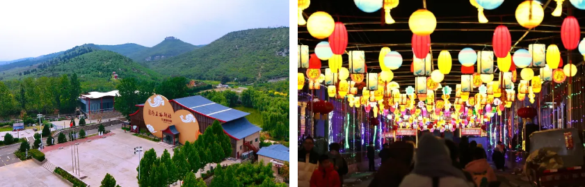 河北绿坤旅游开发有限公司高标准、高速度、高质量修建了跃峰渠景观大道、跃峰渠纪念馆。助推省级非遗“王一村灯地”。每年元宵节,为了庆祝上年的丰收成果,迎接来年的风调雨顺,王一村都会转灯地,灯地中的365根灯杆按照“九曲黄河图”分别布置了九个阵,游人步入灯地,就像进入了一座迷人的灯宫。