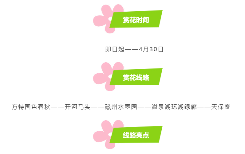 观赏地点:丛台广场、东环路隔离带、秦皇大街、丛台公园、滏阳公园、龙湖公园、南湖公园、赵苑公园、植物园
