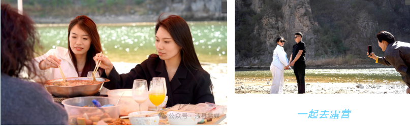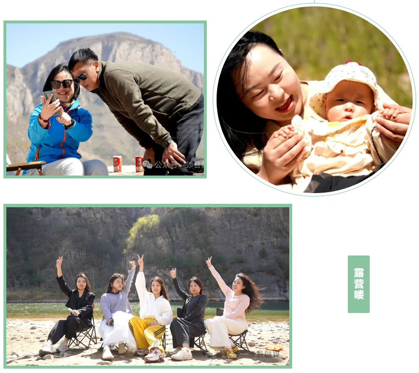 在漳河沿线,岸边点缀着各色露营帐篷。游客们或三五好友围炉煮茶,或全家出动烧烤野餐,欢笑声与漳河潺潺水声相映成趣,造型各异的天幕帐篷沿碧绿河道蜿蜒分布。
