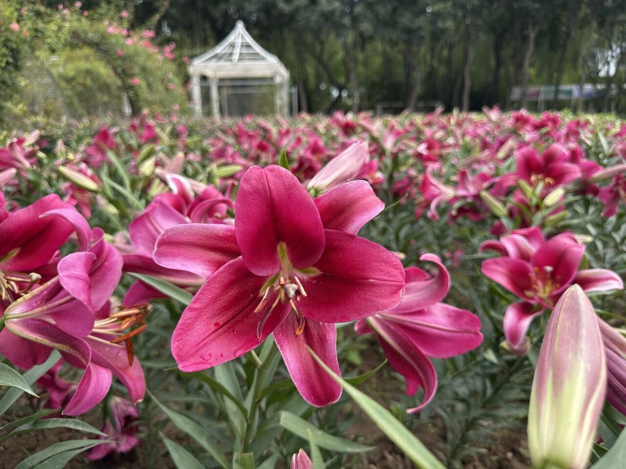 本次花展分为室内和室外两部分,室外花展主展区位于花展厅北侧,涵盖醉蝶、百日草、彩叶草、矮牵牛、金光菊、香彩雀等10余个品种,其中,醉蝶花以玫红、白、紫三色交织出梦幻花浪,橘黄、粉红的百日草花瓣层层叠叠,红色与芥末黄的彩叶草叶片相映成趣,将整个园区装点成色彩饱满的秋日画卷。