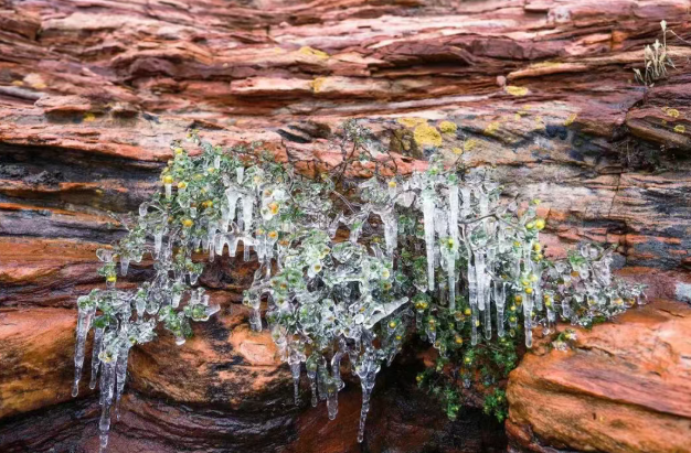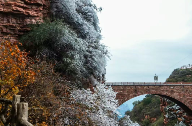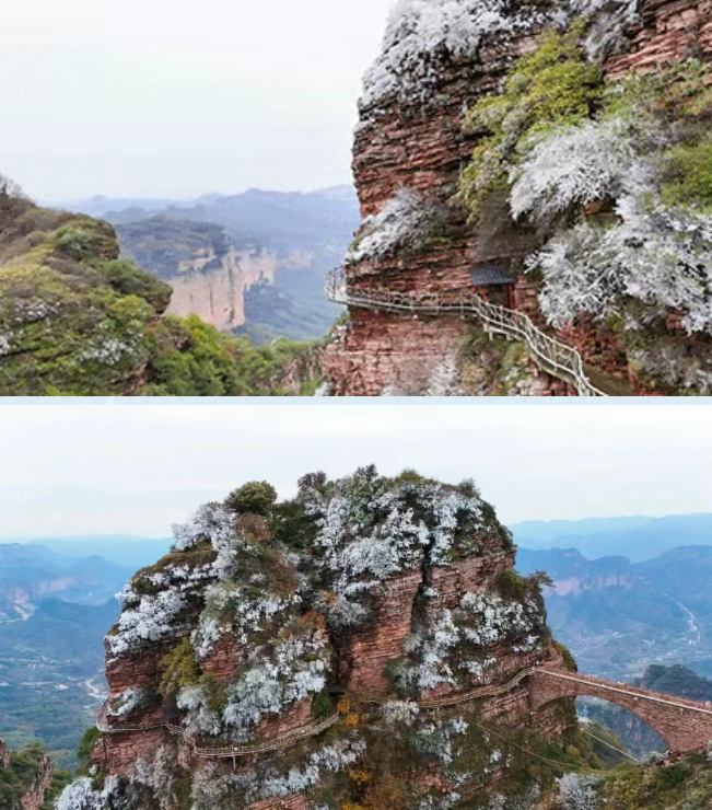 微风拂过 细碎的冰晶簌簌飘落 宛如冬日里洒落的点点星光 浪漫动人 凑近观赏 雾凇的姿态千姿百态,意趣盎然 有的如缀在枝桠间的碎钻 在阳光照射下折射出细碎光芒 有的似裹着薄冰的玉簪 将草木的轮廓勾勒得愈发灵动 还有的轻覆在尚未褪尽的秋黄 深红叶片上 让秋日暖意与冬日清冽在枝头交织相融 别有一番韵味 漫步山间 脚下是落叶轻响 抬头是满目银装 空气中弥漫着冰晶的清新气息 仿佛置身于一幅静谧雅致的冬日画卷之中 雾凇 又称树挂、傲霜花、银花、雪柳等 是大自然赠予武安的限定礼物 它不似白雪那般厚重 却比白雪更显精致 每一片冰晶都藏着低温与水汽的默契 每一处银装都诉说着时节交替的私语 无需刻意寻觅 只需踏入西部山区 这份美好便可能在蜿蜒山径旁 层叠林木间与你不期而遇 眼下的武安 正以雾凇为笺 写着初冬的邀约 趁着多云间晴的好天气 不妨约上三五好友 裹上温暖衣物 走进古武当山 赴这场雾凇盛宴 毕竟 这般藏于时节缝隙中的自然景致转瞬即逝 如此不期而遇的美好 一年里也难得邂逅几回