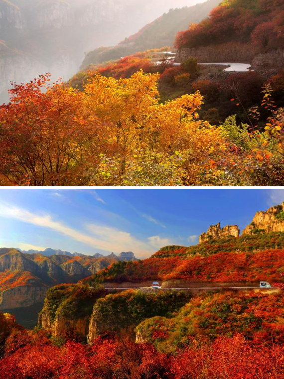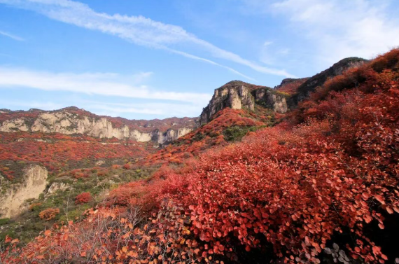 徒步亮点:以“太行第一山”为特色,秋日漫山黄栌、枫树变红,徒步途中可远眺“白毛女洞”等人文景观,登顶后能俯瞰层林尽染的太行秋色,古刹点缀其间,兼具自然与文化感。
