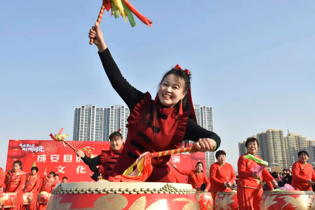 “能和大伙一起把咱成安的非遗民俗展示出来,我感到特别自豪。这不仅仅是一场表演,更是传递、弘扬咱家乡优秀文化的机会,我特别高兴。”成安县非遗民俗表演演员李瑞芹说。