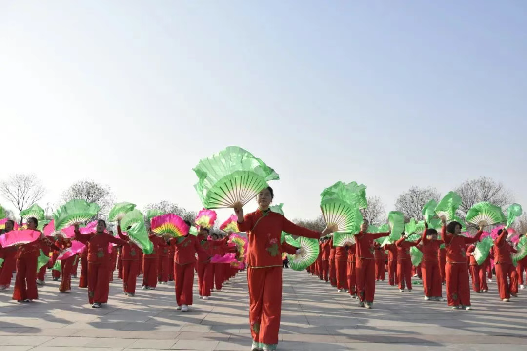 早上九点,活动在激昂的锣鼓声中拉开帷幕。千名舞者整齐排列,伴随着欢快的音乐节奏,翩翩起舞。与普通广场舞不同的是,这套广场舞将成语文化巧妙地融入其中,每个动作都对应着一个成语,如 “胡服骑射”、“围魏救赵” 等,让参与者在锻炼身体的同时,也能感受到中华成语文化的博大精深。