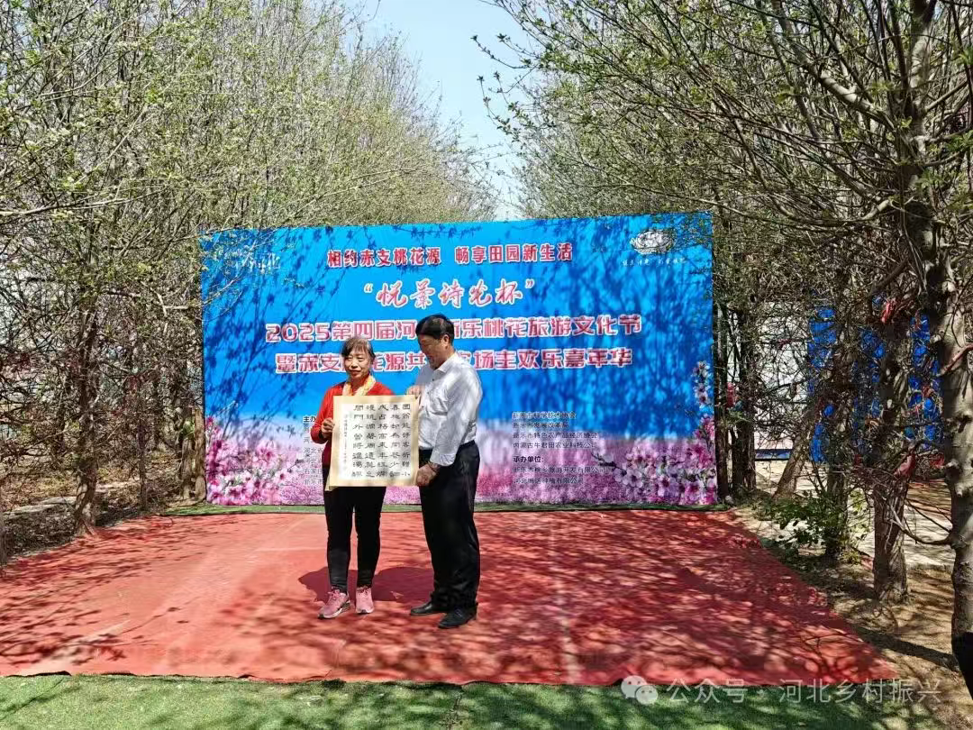 在活动现场,河北省文化名人公益联盟书画院携12位艺术家呈现文化盛宴。常务副院长张三、副院长范新喜、院士李凤梅、闫运来、董广英、刘润香、李芙萍、杜俊敏、孙金荣等名家创作的《桃源春韵》等23幅书画作品赠送给了赤支桃花源公社,将在园区田园科普画廊永久性展出。