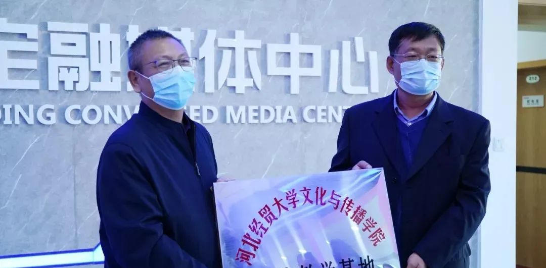 仪式上,河北经贸大学文化与传播学院、正定县融媒体中心负责人共同为河北经贸大学文化与传播学院实践教学基地揭牌,签署战略合作协议书。