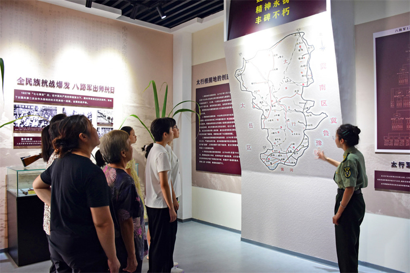 8月21日,游客在临城县石城红色太行文化陈列馆参观。