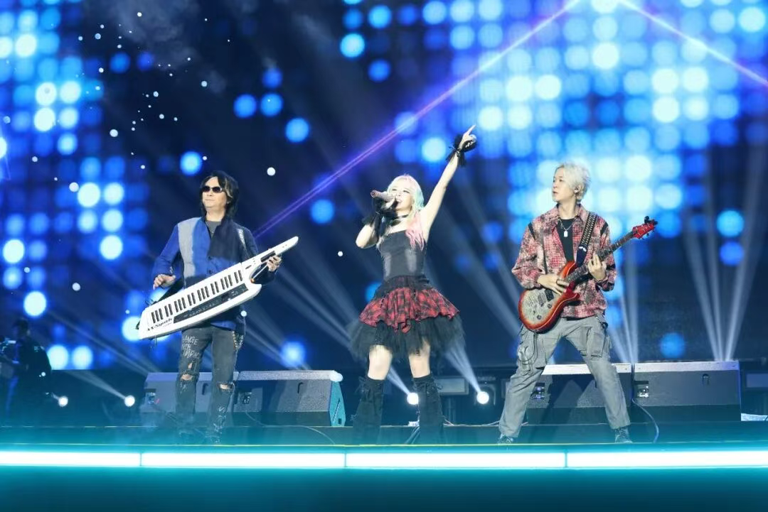 飞儿乐团的登场掀起又一波高潮。主唱穿透力十足的嗓音唱响《Lydia》《我们的爱》前奏刚起便引发全场大合唱。舞台光影随旋律变幻仿佛将观众带回为梦想热血的青春岁月掌声与欢呼声此起彼伏。