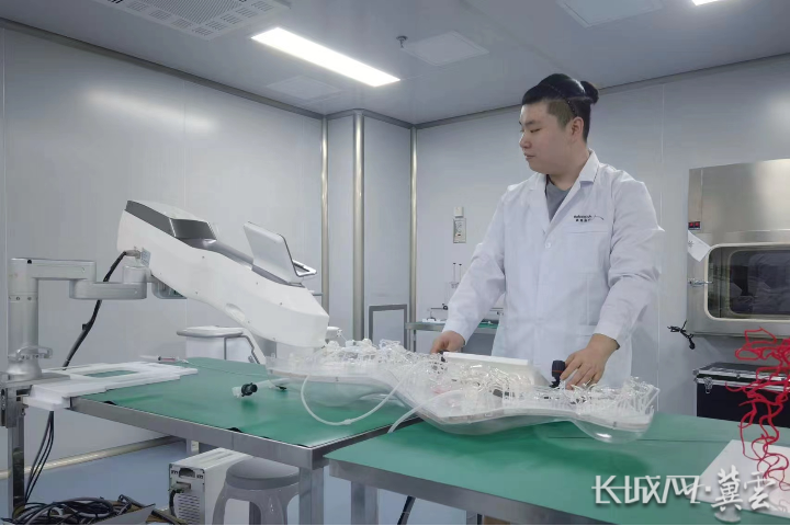 易度机器人技术人员模拟临床造影手术使用试验。长城网·冀云客户端记者 王日成 摄